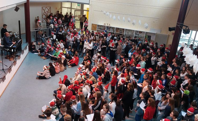 Der letzte Tag vor den Ferien zum Jahreswechsel war sehr weihnachtlich gestimmt – im wahrsten Sinne des Wortes. Ca 350 Schülerinnen und Schüler sowie der Lehrerchor sangen in der letzten…