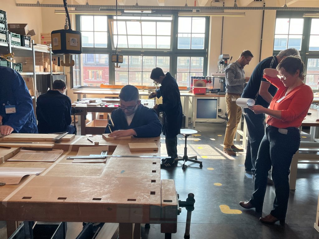 Während des gesamten Wettbewerbs wurden die Teilnehmenden von einer fachkundigen Jury begleitet und bewertet. Neben der handwerklichen Umsetzung spielten auch Aspekte wie Arbeitssicherheit, Zeitmanagement und die Qualität der Planung eine wichtige Rolle. Den Abschluss bildete eine kurze Präsentation: In jeweils drei Minuten stellten die Schülerinnen und Schüler ihre gefertigten Produkte vor und erläuterten ihre Herangehensweise sowie besondere Herausforderungen.